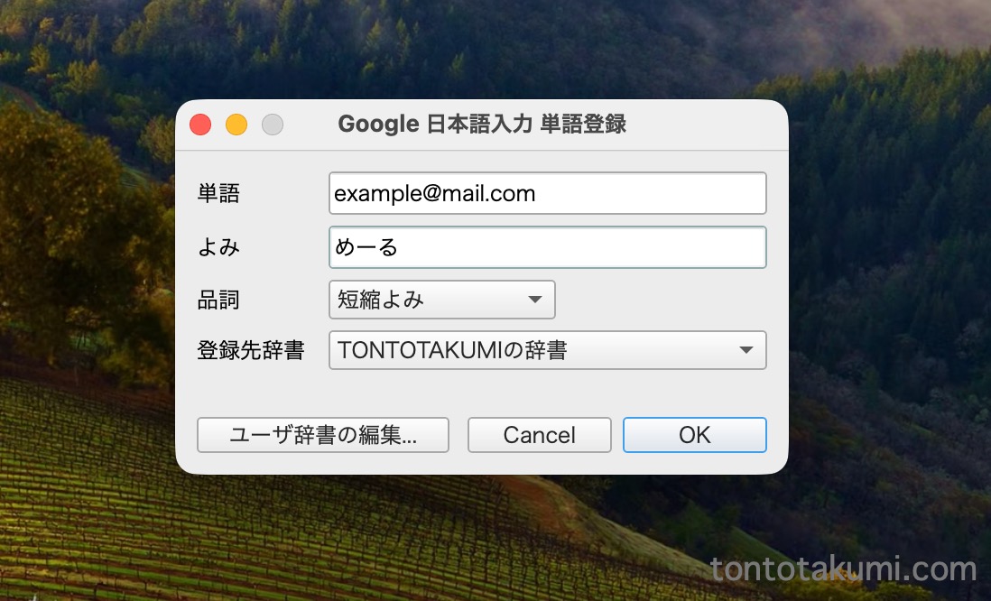 よく使う言葉や文字列を登録しておくと便利ですよ!