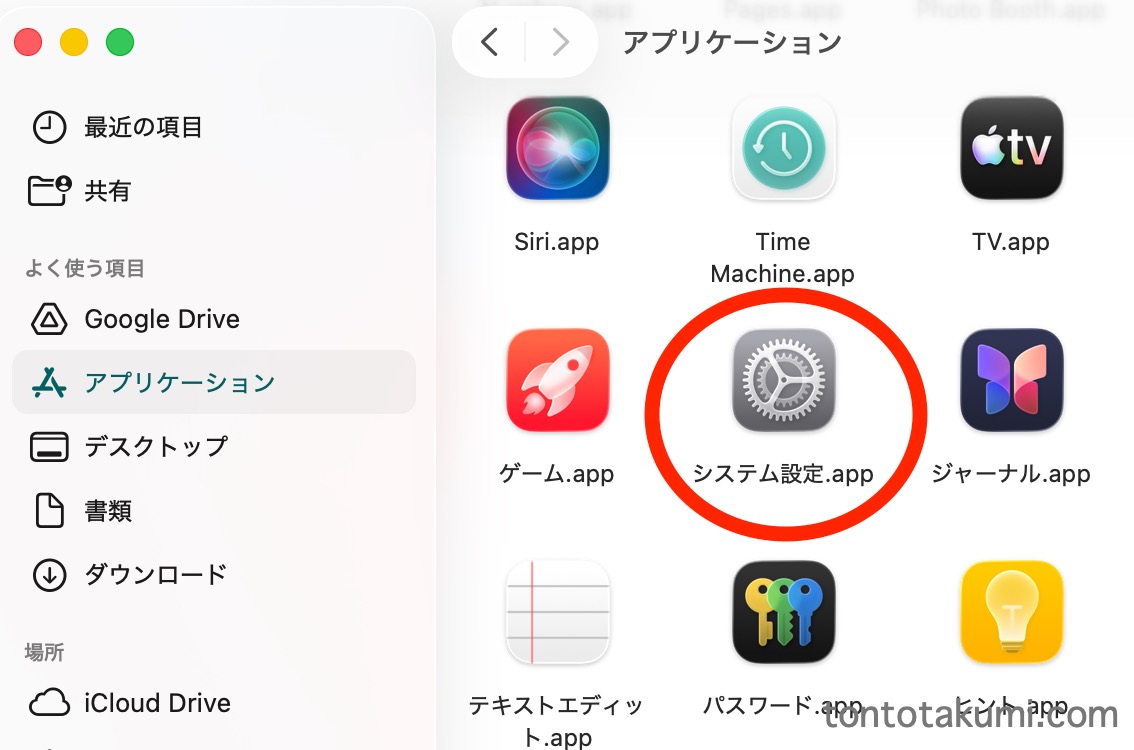 (もし見つからなければ、Finderの[アプリケーション]フォルダの中にあります。)