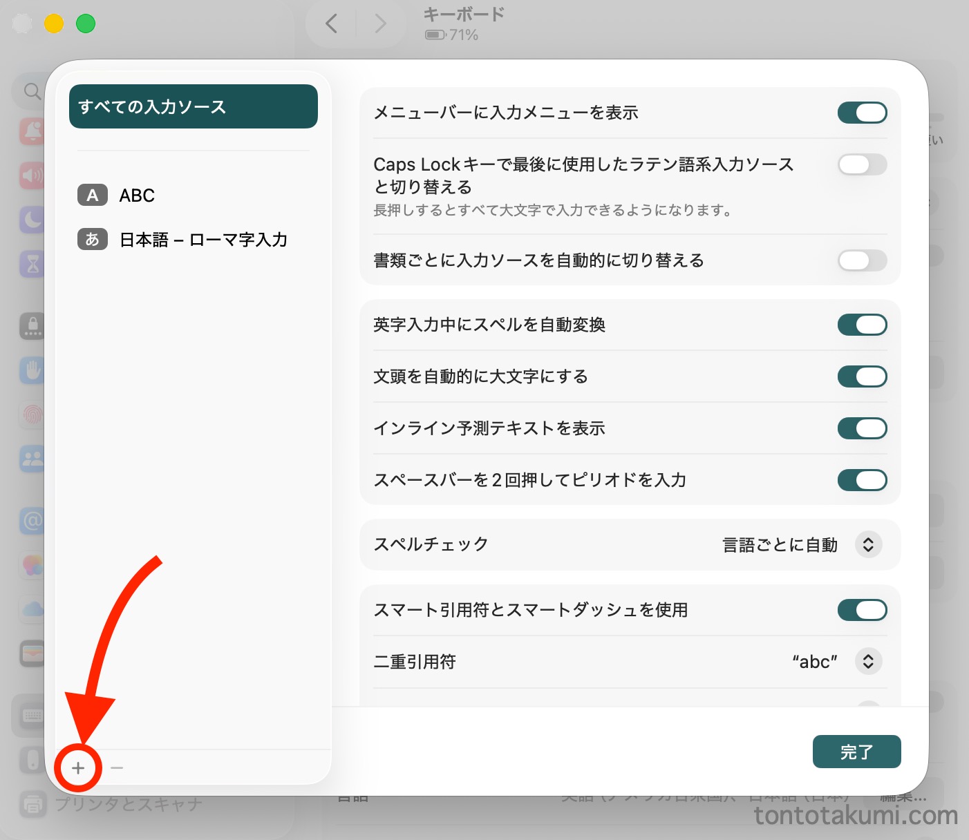 【Google日本語入力】を追加してあげたいので、左下にある [ + ]の部分をクリックします。
